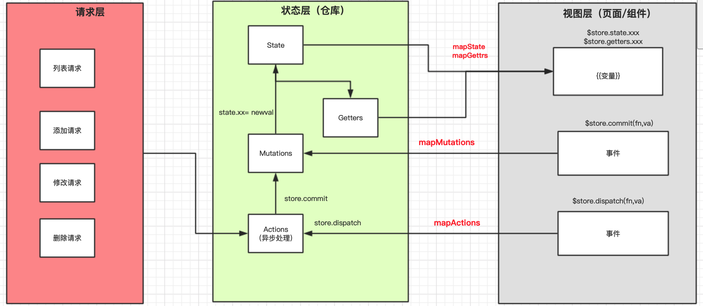 3$store.dispatch('任意模块的actions里面的方法',实参)