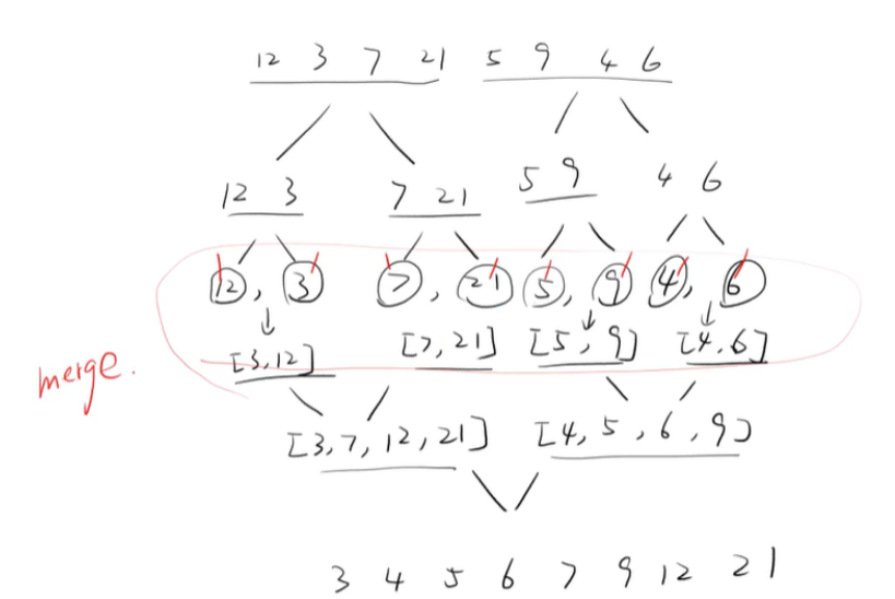 代码实现 1 2 3 4 5 6 7 8 9 10 11 12 13 14 15 16 17 18 19 20 21 22 23 24 25 26 27 28 29 30 31 32 33 34 35 36 37 38 39 class ArrayList { array = []; insert (item ) { this .array.push(item); } mergeSort ( ) { const mergerSorts = (array ) => { if (array.length === 1 ) {return array;} let left = array.slice(0 , Math .floor(array.length / 2 )); let right = array.slice(Math .floor(array.length / 2 )); const merge = (a, b ) => { if (a.length === 0 ) return b; if (b.length === 0 ) return a; return a[0 ] < b[0 ] ? [a[0 ]].concat(merge(a.slice(1 ), b)) : [b[0 ]].concat(merge(a, b.slice(1 ))); }; return merge(mergerSorts(left), mergerSorts(right)); }; return this .array = mergerSorts(this .array); } } let list = new ArrayList();list.insert(12 ); list.insert(2 ); list.insert(45 ); list.insert(123 ); list.insert(481 ); list.insert(56 ); console .log(list.array);list.mergeSort(); console .log(list.array);