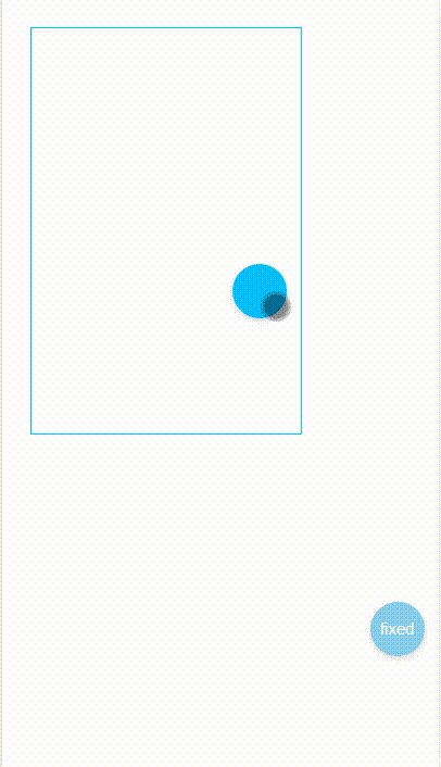 1 2 3 4 5 6 7 8 9 10 11 12 13 14 15 16 17 18 19 20 21 22 23 24 25 26 27 28 29 30 31 32 33 34 35 36 37 38 39 40 41 42 43 44 45 46 47 48 49 50 51 52 53 54 55 56 57 58 59 <template > <div > <div class ="parent" > <div class ="drag-comp" v-drag ="options" @click.stop ="fn1" > </div > </div > <div class ="drag-comp fixed" v-drag ="options" > fixed</div > </div > </template > <script > export default { data ( ) { return { options: { } }; }, methods: { fn1 ( ) { console .log('click' ); }, } } </script > <style lang ="less" > .parent { position : relative; width : 200px ; height : 300px ; border : 1px solid deepskyblue; } .drag-comp { position : fixed; z-index : 99 ; right : 10px ; bottom : 85px ; width : 40px ; height : 40px ; box-shadow : 0 2px 4px #ddd ; border-radius : 50% ; color : #fff ; font-size : 12px ; display : flex; align-items : center; justify-content : center; background-color : deepskyblue; &.fixed { position : absolute; background : skyblue; } } </style >
